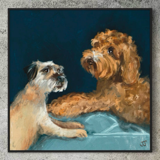 My large size is A3 it'll fit a standard frame, suitable for a large single dog or a double portrait with up to 2 dogs